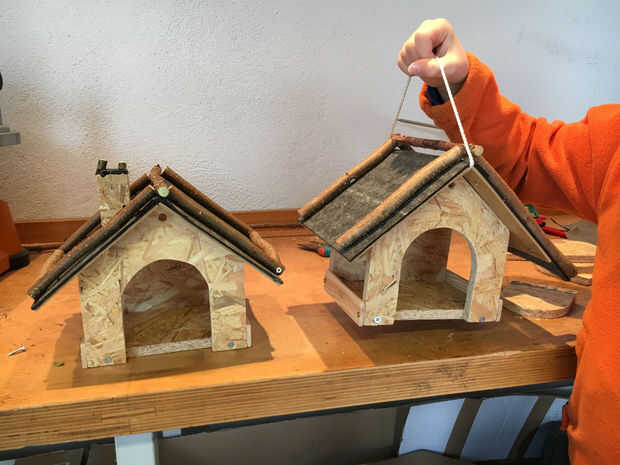 Durante el invierno es un buen pájaro vida fuera y "lunch". Hice un pequeño proyecto y construido con un montón de niños (edad de 8 y 9) durante la fiesta de cumpleaños de mi hijo - fue muy emocionante ver a los niños trabajando en cosas reales.