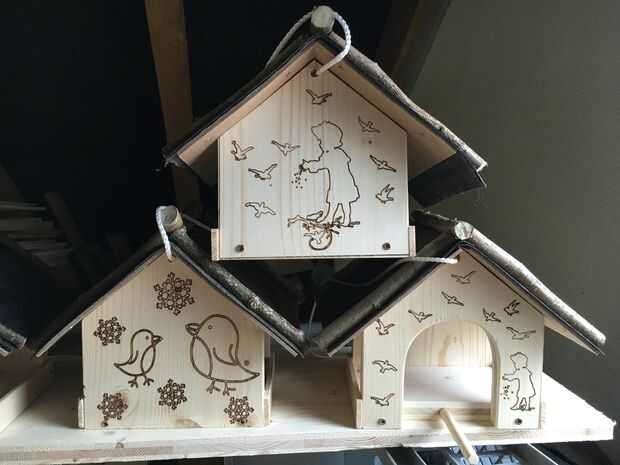 Actualización: Ya en mayo, hemos decidido preparar un montón de alimentadores para el mercado de Navidad (sí, el tiempo se acaba) y piezas de mejoras adicionales. Principales cambios: otro tipo de madera y el uso de láser de grabado para un diseño más agradable.