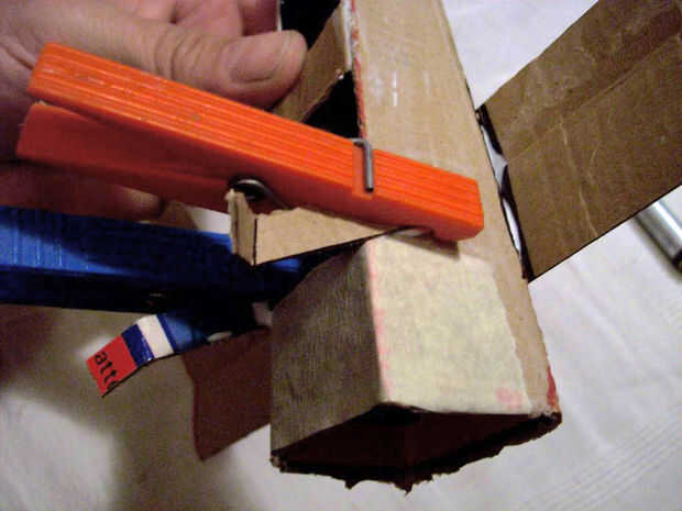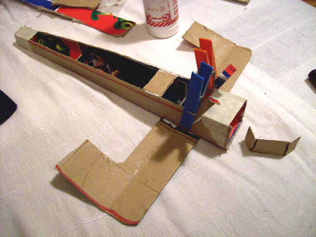 Un barco de cartulina/ductape construido para una competición. Los planes fueron construidos usando el Autocad y luego un montón de cinta pato y cartón