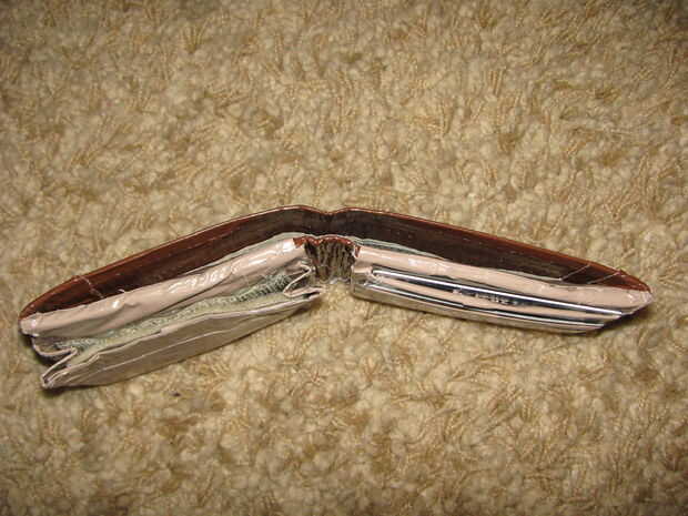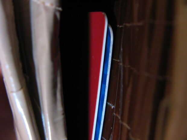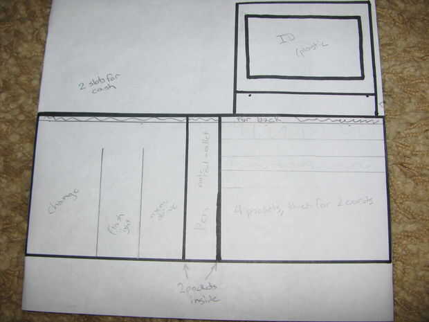 La linterna era muy delgado. Planeaba dejar en su totalidad en el lado o la parte inferior de la cartera para que el bulbo puede brillar a través. Habría sido removible para reemplazar la batería. Decidí no utilizar sólo por el espacio y lo poco lo usaría.