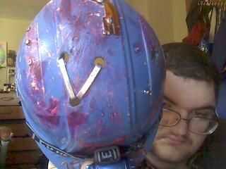 este traje fue creado de una simple caja marrón recogida en una tienda de comestibles.  Utilizamos cartulina negro, fieltro material, brillaba Paneles adhesivos, limpiadores de pipa, varias pegatinas y apliques y pintura brilla en la oscuridad.  Usam