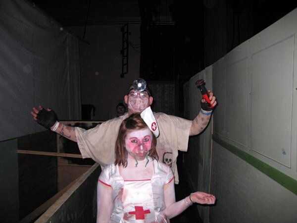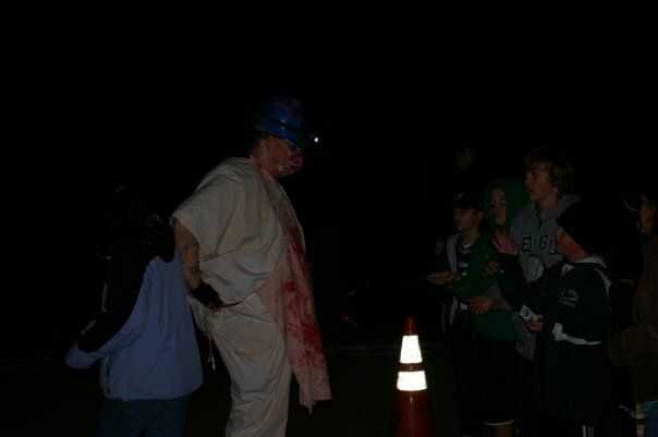 el LASER Maze fue nuestra transformación y Arduino powered casa embrujada garaje para 2011. Un monitor se encuentra fuera de la cochera, mostrando "PRESS START". Después de presiona el botón, un video intro juegos que instruye a esquivar los ray