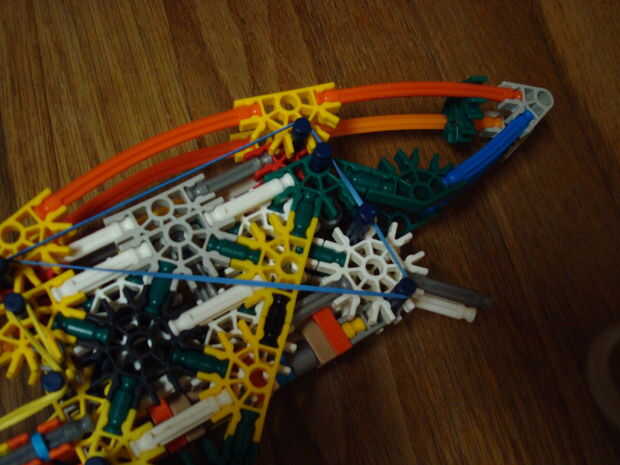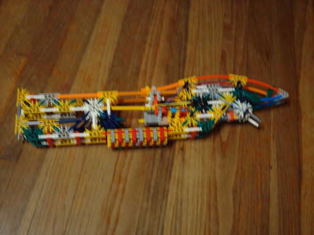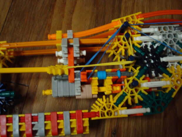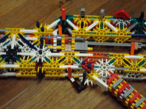 My new knex gunSling Shot Rifle One ShotCuenta con:Un sistema de disparo: |Inicio carga del cañón:)rango de 45 pies con 2 bandas!:)Cómoda manija:)No por lo que bien parece :(Lenta velocidad de disparo :(Crédito para:Asesino-Safecraker para el gatill