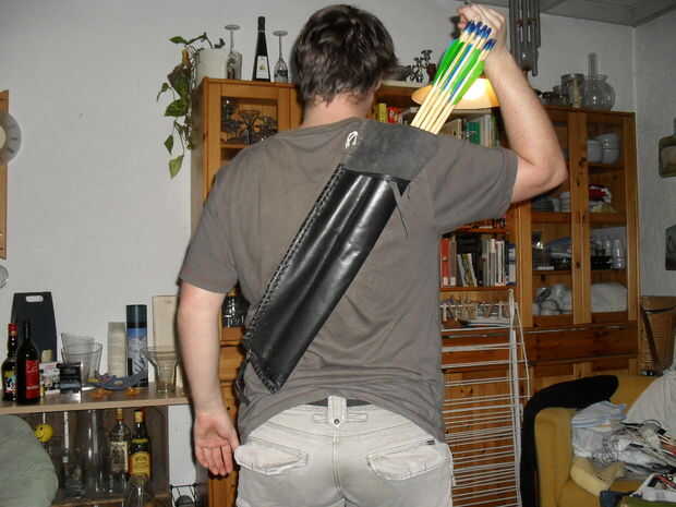 hace unos meses hizo un carcaj de espalda que quería compartir con ustedes chicos. como un archer(flat bow) "tradicional" me gusta tener mis flechas en la parte posterior. pero no quiero una aljaba que tienes que tirar después de un par de veces de tiro para alcanzar incluso las flechas. porque su hizo de una sola pieza realmente cuelga en el hombro por lo que mantiene el mismo lugar prácticamente todo el tiempo.