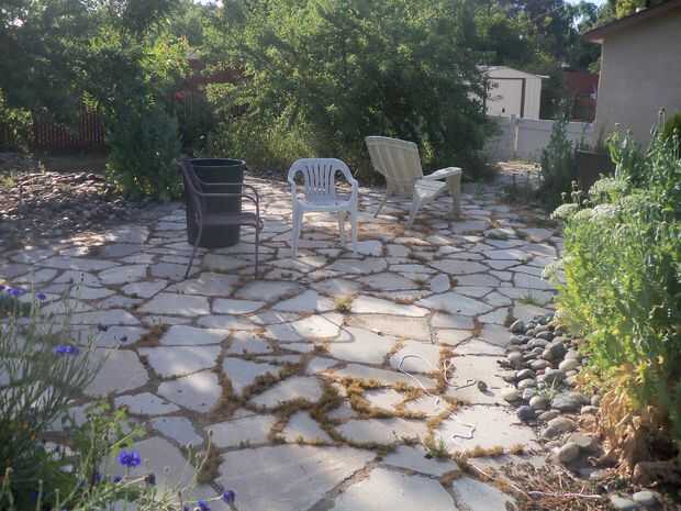 He incluido fotos del resto de mi área de patio trasero, incluyendo el gallinero hecho de material reciclado cerca, el patio hace de acera reciclado concreto y otras áreas notables.