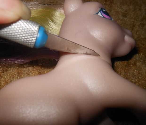 Existen algunas maneras diferentes para remover una cabeza. Algunos son la variedad "Nuevo girando la cabeza". Sólo necesitan un poco de fuerza bruto para reventar la cabeza derecha hacia fuera. El uno había estaba pegado, básicamente vas a necesitar obtener su bisturí y cuidadosamente correr alrededor de la línea de combinación en el cuello de ponis, tenga cuidado de no resbalar y el potro de la cicatriz o cortarse. Trate de mantener siempre las manos fuera del camino de la cuchilla, siempre detrás de la hoja no enfrente. Sobre todo tómate tu tiempo.