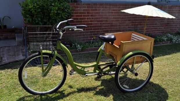 Tiempo para un batido hacia abajo. Montó a la tienda con las chicas, todo iba bien hasta que di cuenta que tenía no hay manera de llevar cosas que no sean mis chicas. No hay problema tengo una cesta enorme en mi galpón que voy a añadir a la moto. Esta cesta es muy grande y muy plata. Es todo lo que veo cuando miro la moto. Esperemos que un poco más de spray de pintura ayudará a tono hacia abajo. Ahh que es mejor. Una última cosa para este proyecto una sombrilla en una venta de garaje hay que añadir el toque final y gire esta bicicleta una vez fea en un lleno en rickshaw.