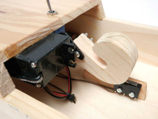 Mi diseño es diferente de la original en el me quita la tarjeta controladora de servo, utiliza un interruptor DPDT para cambiar la dirección del motor y un interruptor de palanca SPST para apagarlo cuando la palanca está en reposo en el cuadro.