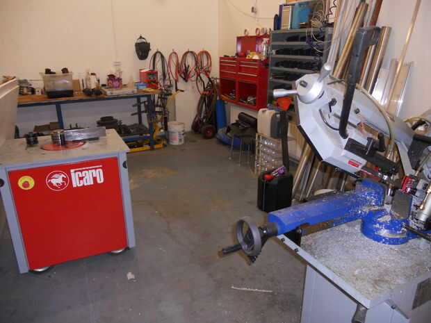 Here's my workspace. Es un 8'X 12' de la esquina del granero de polo de mi papá.He incluido enlaces a los proyectos que están en la foto superior.Horquillas de JacobAdaptador de aire del tanque de propanoLámpara de Scanner (en curso)Conversión de tal
