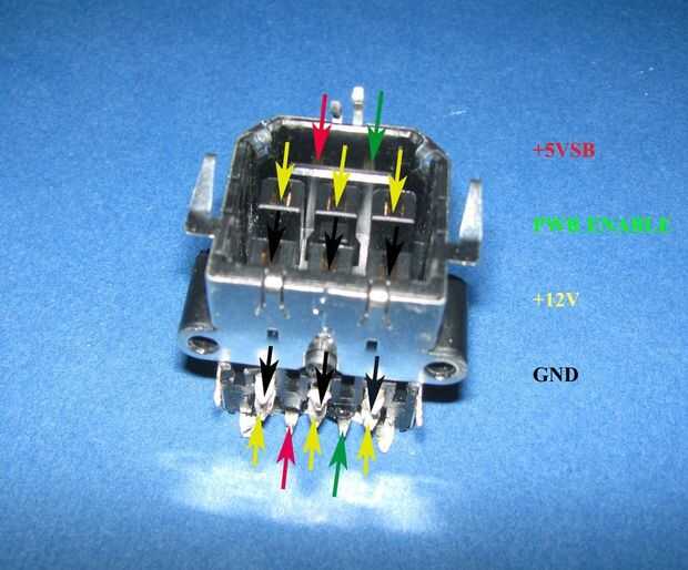 (5V) y (permite) pernos estaban conectados al interruptor y luego el cable (rojo) del conector molex * mismo lado como poder habilitar * que 5v sólo está presente en el conector molex cuando es interruptor.
