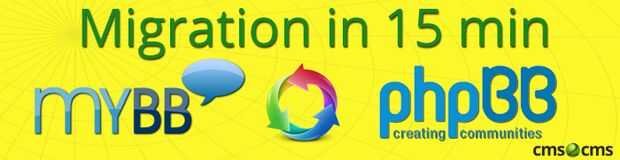 En caso de que usted está dispuesto a migrar tu foro de MyBB a phpBB puede hacerlo con una herramienta de transferencia. Por lo tanto, no necesita copiar y pegar todo el contenido. Se transfiere la materia completamente automatizadamente, máximo exacto y rápido.