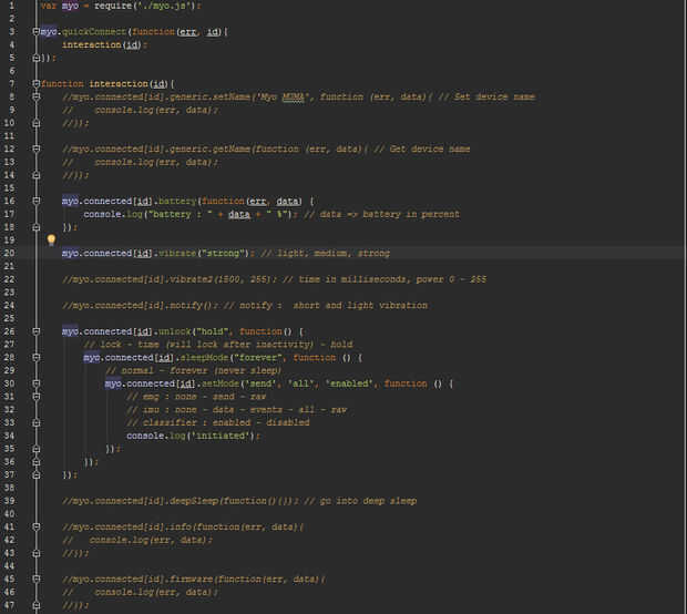 Los diferentes pasos que se describen a continuación utilizan Protocolo de bluetooth que conecta Myo y tablero de Edison de Node.js.