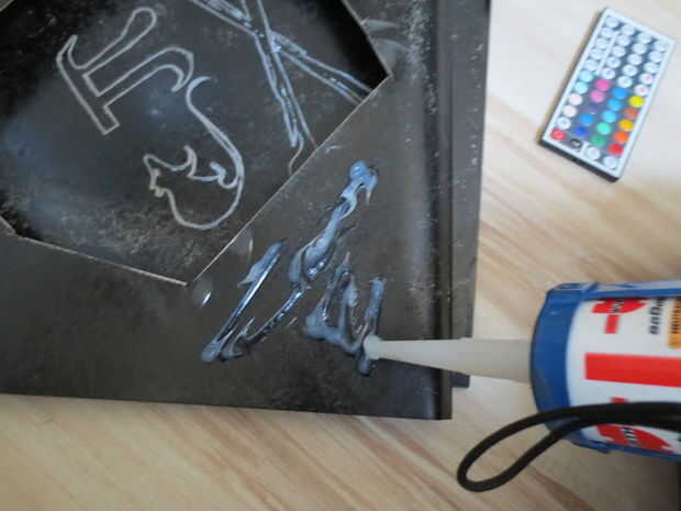 7. Fije la parte trasera metálica al vidrio con silicona.