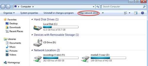 1) configuración de una nueva unidad de red asignada, como se muestra. No importa que letra de unidad - elegí Y:\.