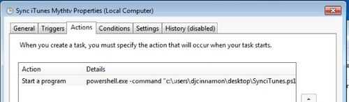 PowerShell.exe-comando "c:\users\currentuserhere\desktop\SynciTunes.ps1 - recdir Y:\ - dbhost mythhost - dbuser dbuser - dbpass dbpassword"