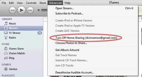 3) en iTunes, vuelta en Home Sharing, como se muestra.