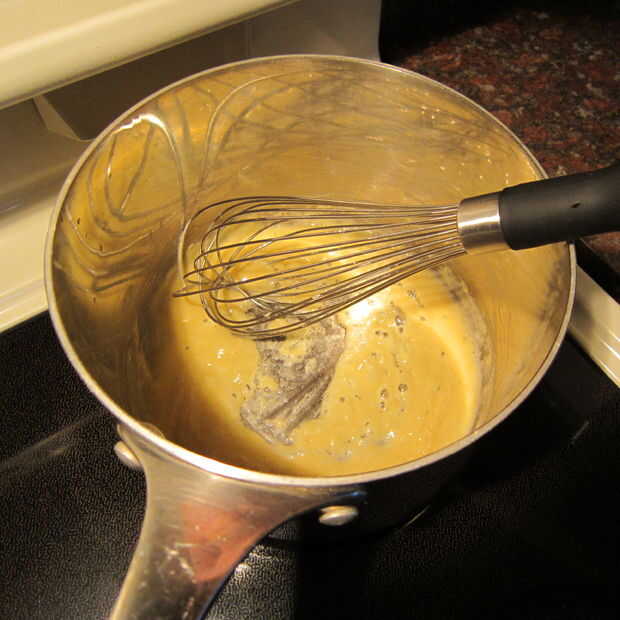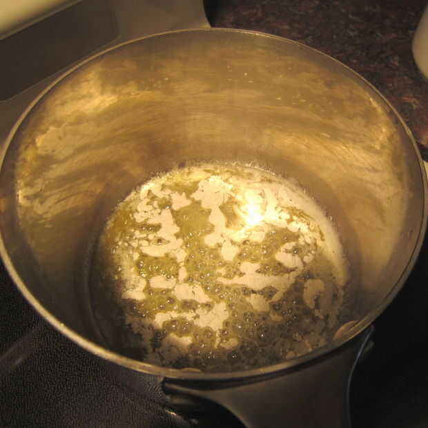 Derretir la manteca en una cacerola mediana sobre fuego medio alto. Añada la harina y mostaza de tierra y batir. Cocinar aproximadamente 3-5 minutos para cocinar fuera el sabor de la harina. Mezcla se venga gruesa y suave.