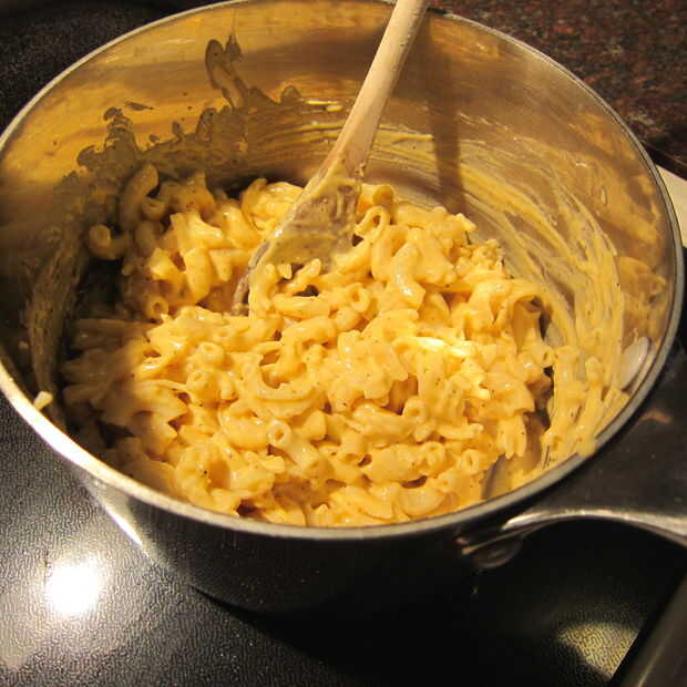 Agregue la pasta de queso y revuelva suavemente hasta para cubrir la pasta de todos. Ponga a un lado.