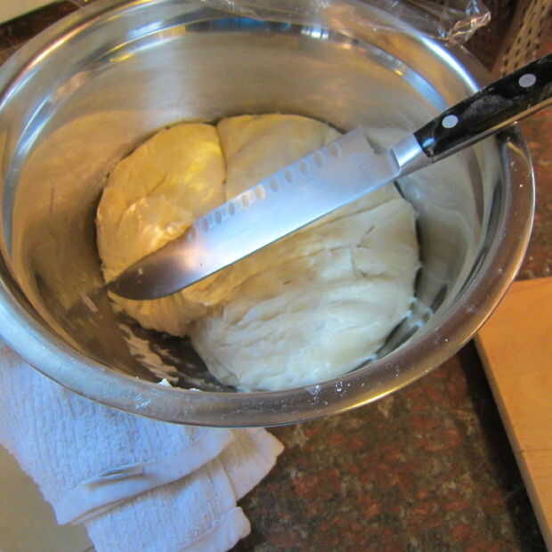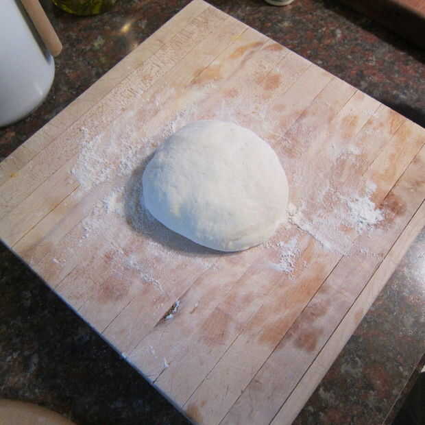 Cortar 1/4 de la masa. Forma una bola y cubrir ligeramente en harina.