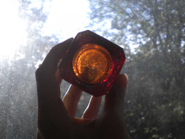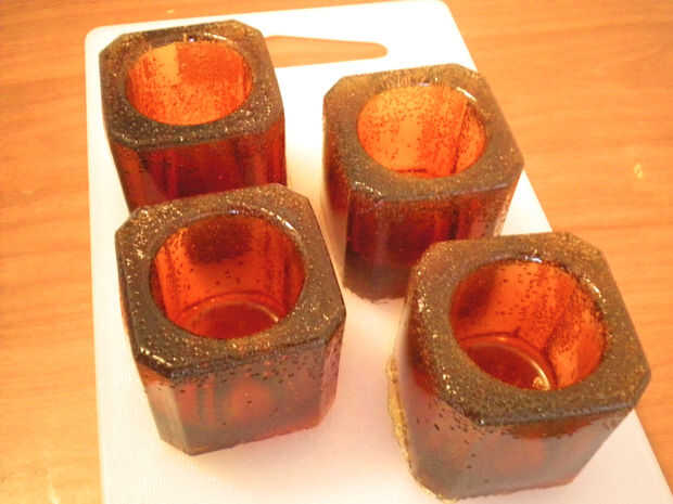 Cuando alcanza 300 grados sacar del calor y deje que se enfríe un poco a 265 grados. Podría agregar colorante en este momento si desea tener más coloridos condensadores, aunque si la mezcla es de color marrón, cualquier color añades lo más probable es salir de color marrón oscuro. Dejar que se enfríe un poco, reducirá la cantidad de burbujas en tus moldes. Vierta el jarabe de azúcar en los moldes y permiten establecer durante la noche. Por cierto el jarabe de azúcar hace estos crujidos circular increíbles en el bote después de duchas con agua fría! El caramelo en los moldes del estallido y limpie el exceso de aceite. Se ven casi como vidrieras-simplemente encantador.