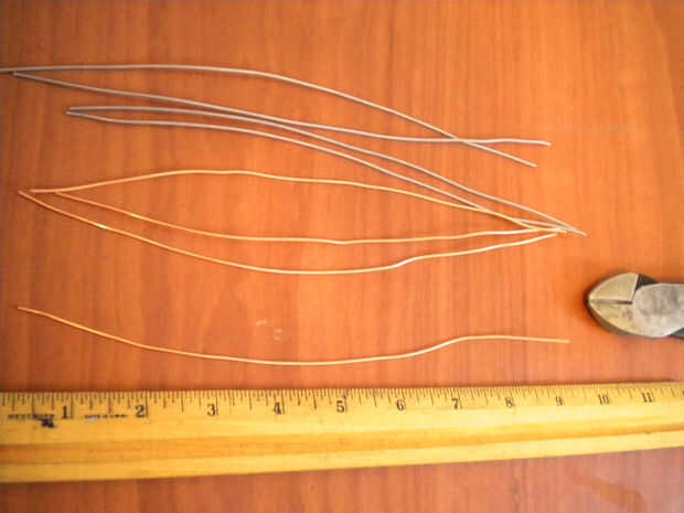 4 cortar trozos de alambre de cobre y aluminio (calibre 20) en tiras largas de 9 pulgadas. Envuelva un pedazo de alambre de aluminio alrededor de unos alicates cuatro veces y tire hacia arriba para formar una espiral. Asegúrese de que ninguna de las curvas toquen para asegurar una máxima superficie cuando se coloca en las cáscaras.