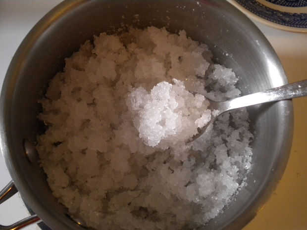 Revuelva con frecuencia y homogeneizar las sales-no hervir la solución. A calentar hasta que esté líquido que debe tomar 5-10 minutos dependiendo de la estufa.