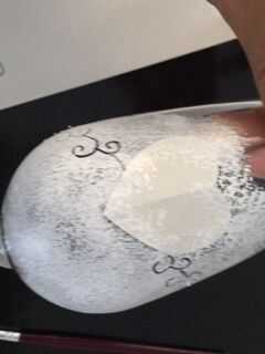 Con el extremo despuntado de la brocha de grabado en la pintura fresca el diseño que usted ha planeado. Hice una sola línea de remolinos va diagonal a través del corazón.