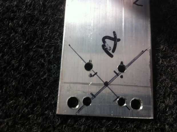 Me hizo una línea de 1/2" de la parte superior de mi centro de la marca en el lado que tiene el bloque sirven entonces marcó el centro de la línea y una"X"para hacerme agujeros alineados correctamente y sólo mide la distancia entre los agujeros en el bloque de servicio y marcada esa distancia en la"X"