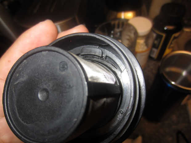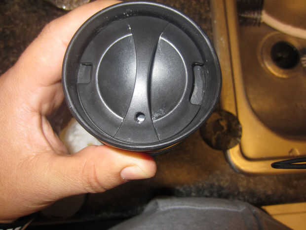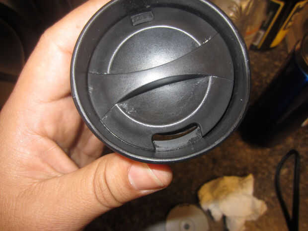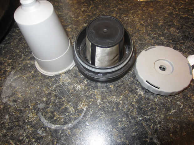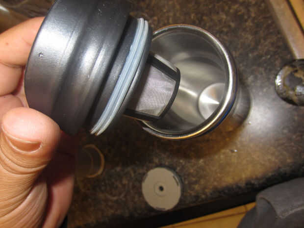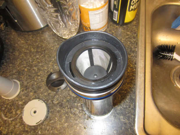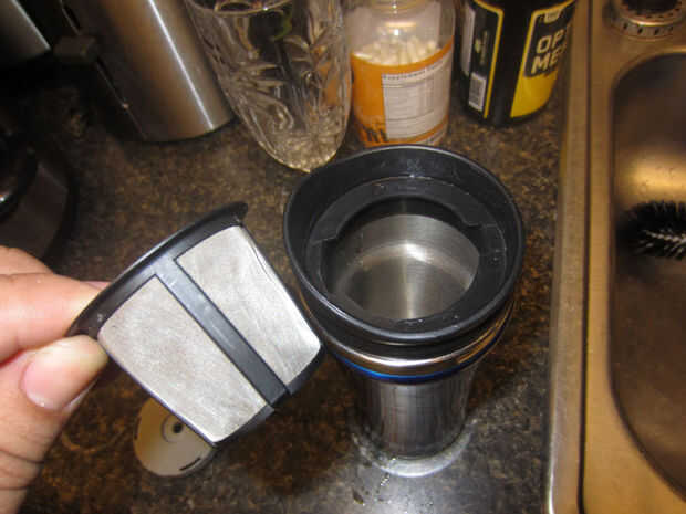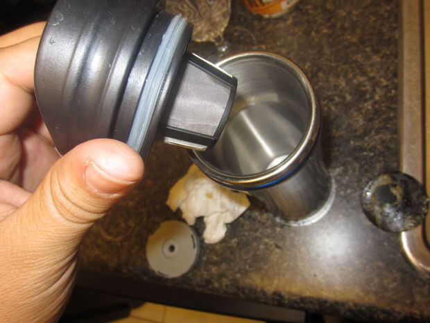 Ella tiene una taza de café que ella nunca se deja atrás... vi que el mismo filtro de café recargables de mi máquina de keurig que usé en el café filtrado paja también incorpora dentro de la taza de café... Así que pruebo equipado mi filtro de café interior y traté de trabajar de una manera que todavía mi café del filtro...