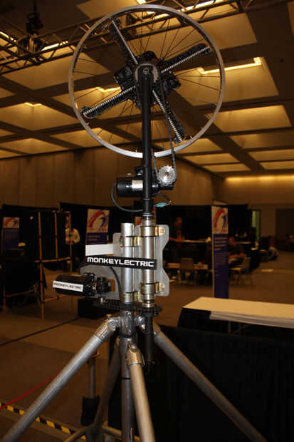 -la pantalla se crea haciendo girar una rueda de bicicleta con hileras de luces en su interior