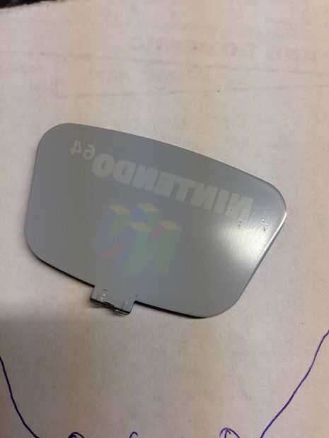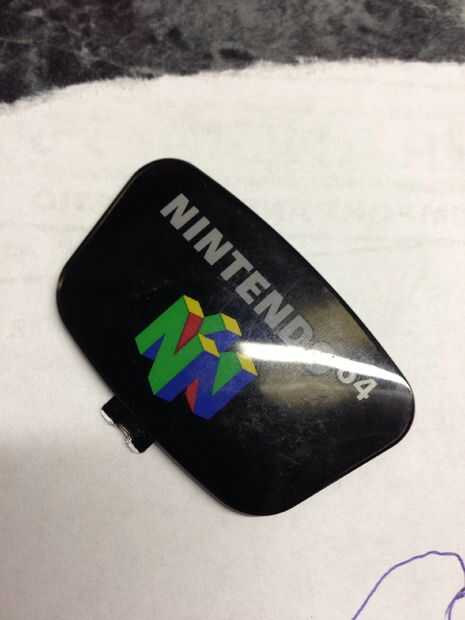 Utilizar el dremmel para abrir totalmente el área detrás del emblema de la N64. El emblema debe pop off usando un destornillador pequeño por detrás, si no espera que un secador a él durante un tiempo y va a salir eventualmente. Éste se tomó un tiempo pero finalmente salió. También asegúrese de pelar el pegamento de la parte posterior del emblema.