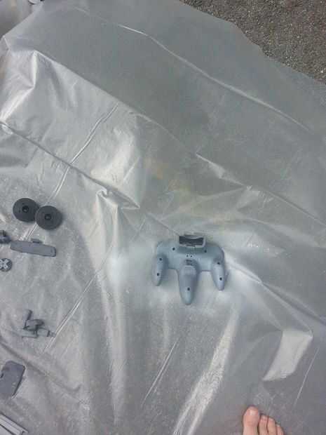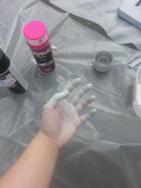 Mi recomendación es usar guantes de goma para poder sostener los elementos que los hace girar mientras esté rociando. Desea utilizar capas delgadas y deje secar entre las capas. Tener paciencia, es rollo esperar para que la pintura y la imprimación se seque, pero tendrá que pagar.