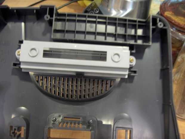 antes de que pinte la cáscara que desea eliminar los partes movibles para que ellos no jam con pintura. la cubierta del paquete de puente se sale fácilmente, y los botones power y reset, si te fijas, se llevan a cabo en por pequeños dientes. Empuje los dientes juntos y luego empuje hacia abajo y el botón debe estallar hacia fuera. la última parte de quitar es la aleta donde el cartucho va pulg esto es sostenido en por pequeños tornillos de cabeza philips y es fácil de desmontar. Si usted no está mecánicamente inclinado, asegúrese de recordar cómo todo fue juntos así que usted puede montar más adelante.