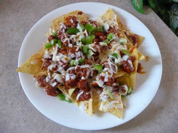 Microondas los Nachos intervalos de 30 segundos hasta que el queso está derretido pegajosa.