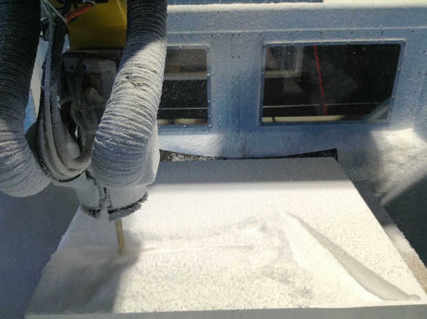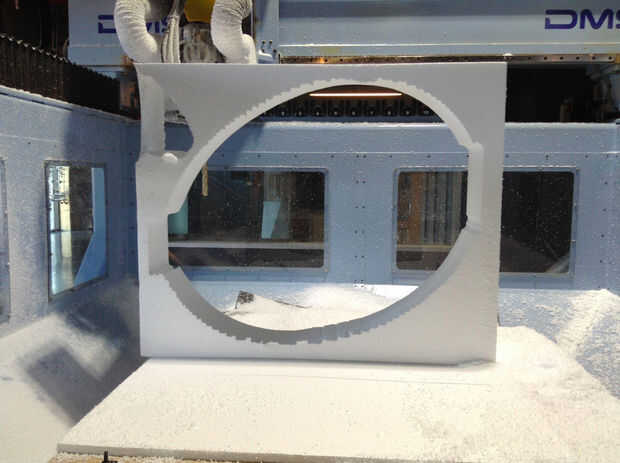 Espuma de molinos muy rápidos. Manchas de espuma pueden también se limpian fácilmente para arriba y más difícil para inhalar que decir, MDF. Teníamos que tener mucho cuidado con la limpieza, como las fichas de espuma llenan completamente el colector de polvo después de sólo una o dos piezas de fresado.