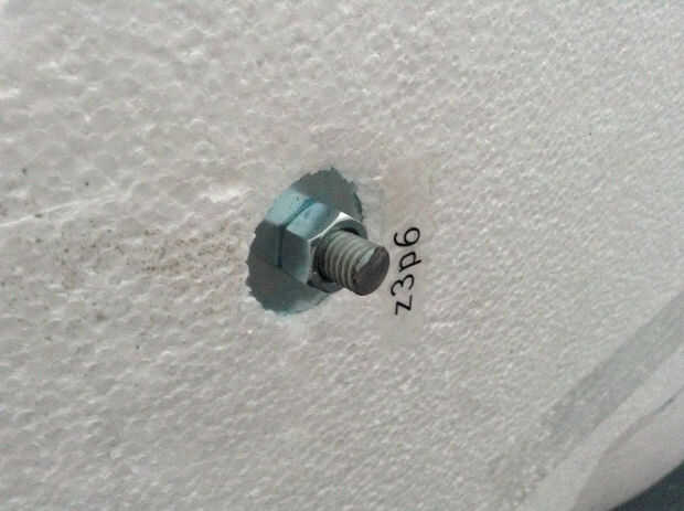 Relleno adicional y el adhesivo se aplica a los agujeros después de que los pernos se recortan.