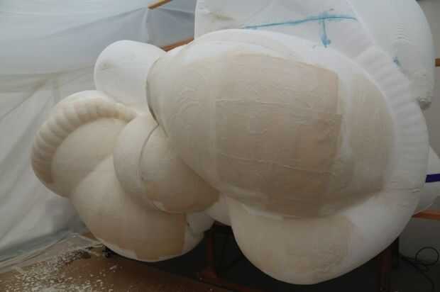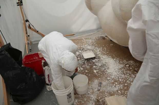 Parches de muselina son cortar a diferentes tamaños, sumergidos en el yeso húmedo y aplica a la superficie de la espuma se seque.