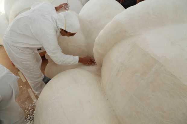 Esto le da la fuerza de la escultura y la textura. También resulta en una superficie que se asemeja a un capullo, o algo de origen orgánico.