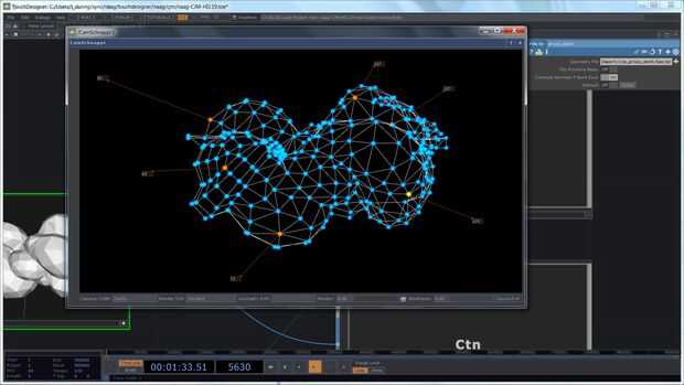 Mapeo de la escultura se hace con CamShnapper, un parche en el mapa interactivo para TouchDesigner basado en MapaMok por Kyle McDonald, una técnica de mapeo que aprovecha funciones ópticas en OpenCV.