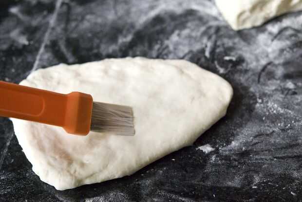 Ahora si lo desea, espolvoree un lado del naan con su sabor deseado (ajo, comino, cilantro picado). Acabo de hacer simple manteca naan. Entonces el otro lado con agua del cepillo