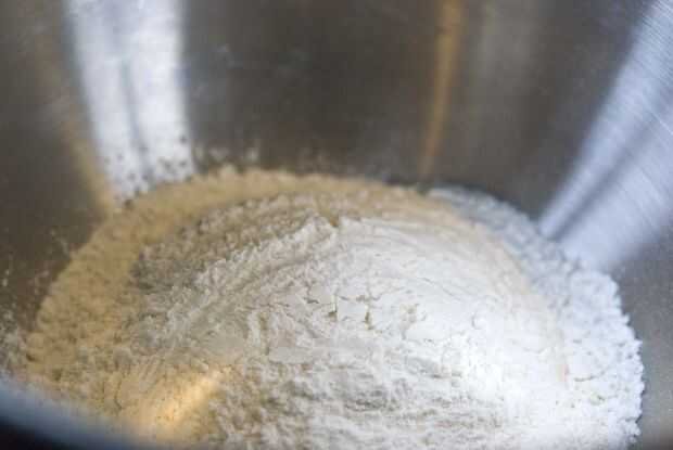 En un bol colocar la harina, bicarbonato, azúcar y sal. Calentar 1/2 taza de leche, que sea tibia, no caliente y añadir el yogur. Ahora vierta los ingredientes húmedos en seco y mezclar bien hasta obtener una masa lisa y muy pegajosa. Cubrir con una toalla y dejar la masa reposar en un lugar caliente unas 2 horas.