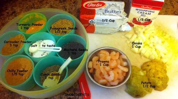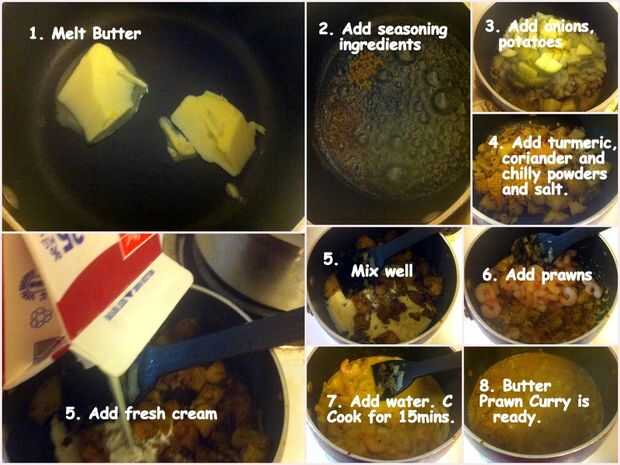 Paso 2: Ingredientes y pasos de preparación para la mantequilla al Curry de gambas.