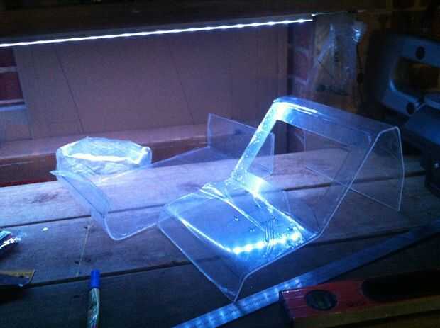 Después de unos pocos practican carreras en algunos recortes, me encontré con ajuste de la pistola de calor de 250 grados centígrados dio los mejores resultados sin fusión y burbujeante de la hoja. La hoja se sujeta con un borde recto, luego se aplica presión suave como el acrílico se convierte en suave. Requiere tiempo y paciencia pero se puede hacer.