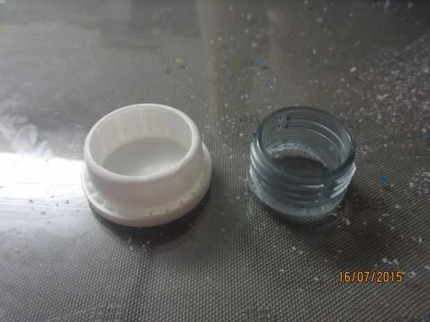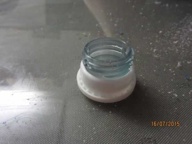 2. Compruebe que el hilo de rosca plástico es empujado a una profundidad constante en el corcho blanco de vaciado