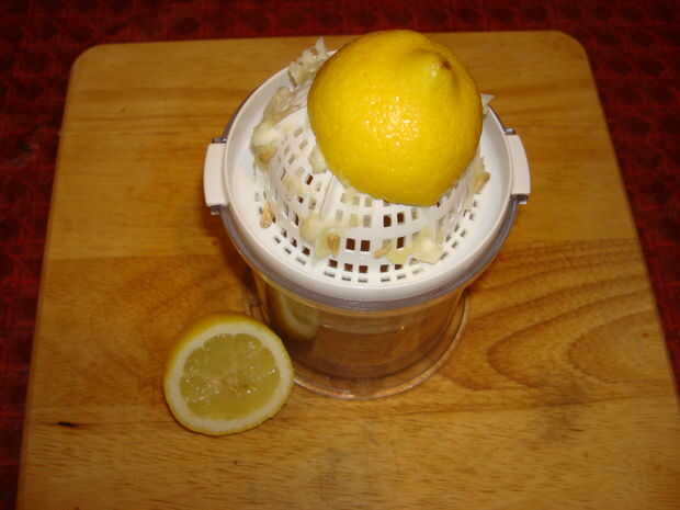 Nota: Coloque un limón limpio en el microondas durante 20 segundos. Dejarlo hasta que es temputure de la habitación. Si no lo se soy un limón jugo todo sobre. Entonces suavemente rodar el limón sobre el contador empujando un poco para ablandarlo. Luego cortar por la mitad y exprimir el jugo utilizando un extractor de jugos si tienes uno.