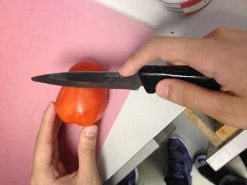 Cortamos hasta el tomate con un cuchillo de cocina afilado