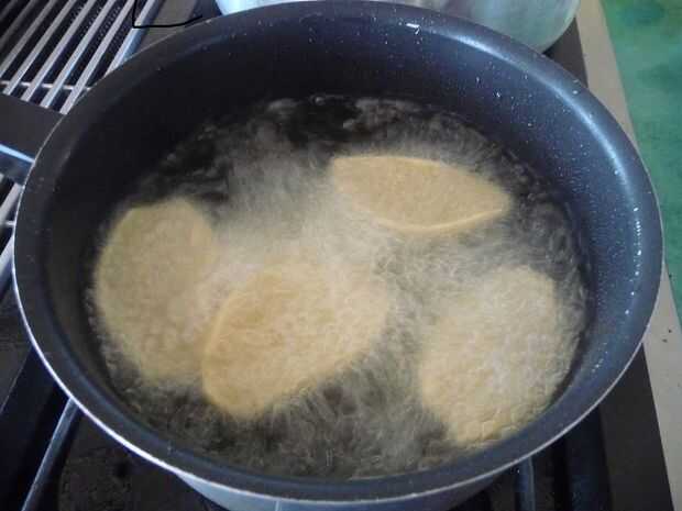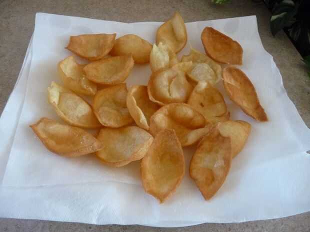 Freír las conchas de pasta en pequeñas cantidades hasta que tienen un rico color dorado. (Tómese unos minutos y experimentar con un par de conchas para determinar la temperatura adecuada y tiempo de cocción. Under-cooked conchas será masticables y demasiado cocidos cáscaras será demasiado crujientes... pero perfectamente cocidos cáscaras será crujiente, ligeramente crujiente y justo!)