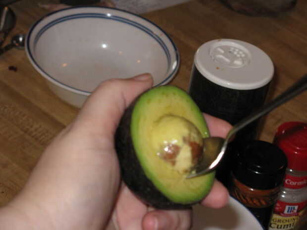A continuación rasgar la carne de la palta o aguacate una vez más con su cuchara de mano