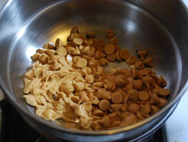 • Derretir los chips (chocolate, mantequilla de maní, blanco chocolate, etc.).