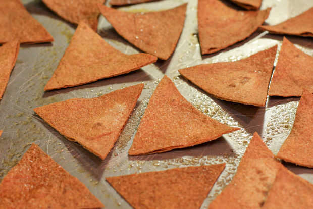 El segundo enfoque es hacer tus fichas. Ya que he etiquetado este snack como saludable, estoy evitando la freidora y recomendamos que hornea totopos. (Si usted vive para freír, bien, usted puede ir eso Ruta demasiado.)